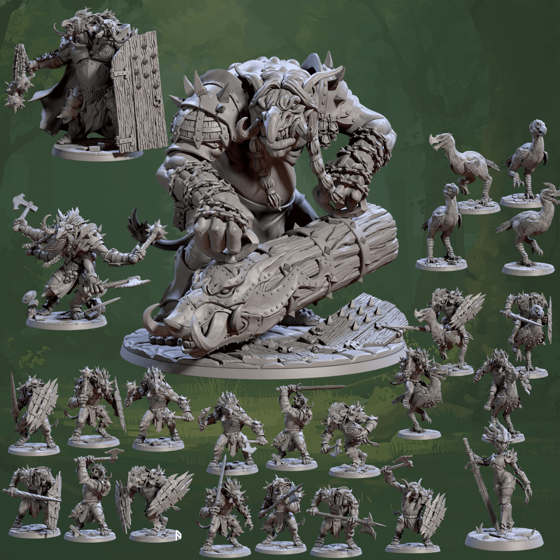Ironkeep War-Trolls van Artisan Guild: Hoogwaardige 3D-geprinte resin miniatures met D&D-gridvriendelijke bases (25, 50, 100 mm) en 32–35 mm painters scale voor schilders.