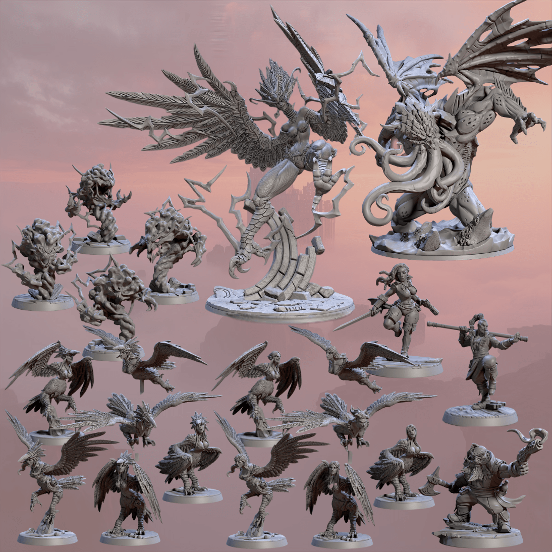 Raid at the Temple of Zephyra van Artisan Guild: Hoogwaardige 3D-geprinte resin miniatures met D&D-gridvriendelijke bases (25, 50, 100 mm) en 32–35 mm painters scale voor schilders.